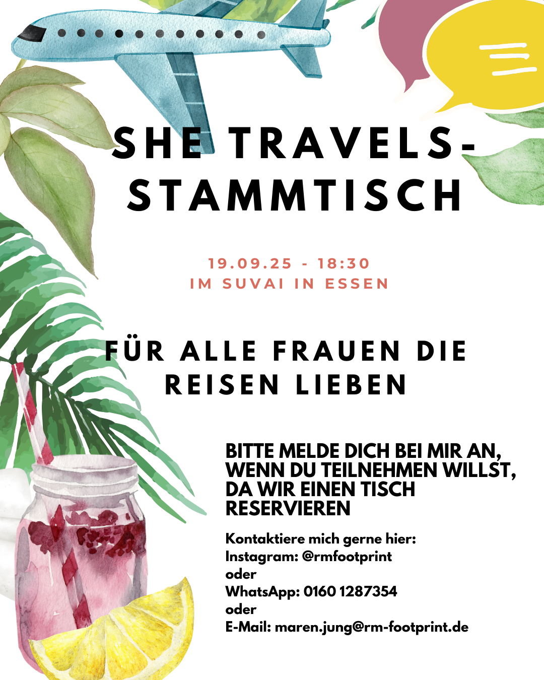 Der She Travels Reisestammtisch ist ein Stammtisch für alle Frauen, die gern reisen und essen in Essen & der Region ☀️💙